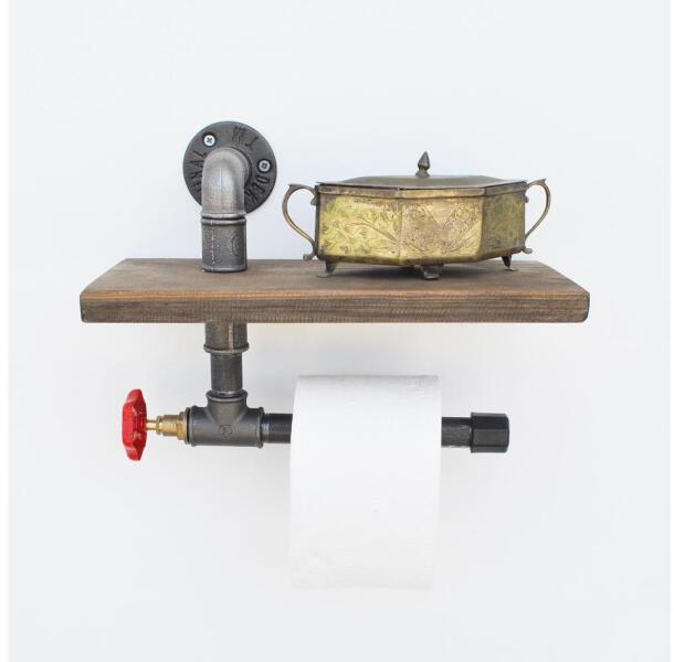 Fakó toalettpapír tartó polccal fenyőfából, ipari stílusban. A modern stílusának köszönhetően minden otthonba illik. Fából és fekete fémből készült kombináció. Maximális teherbírás: 3 kg.