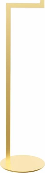Modern papírállvány, acélból készült. A termék nem igényel önszerelést, a teljes szerkezet hegesztett, így az állvány stabil és tartós a használat során. Minimalista kialakításának köszönhetően tökéletesen illeszkedik szinte minden fürdőszoba stílusához, nemcsak otthon, hanem szállodában vagy szépségszalonban is. A termék rendkívül precízen készült, és a porszórásos bevonat, megvédi a korróziótól. - szélesség: 20 cm - mélység: 20 cm - magasság: 72 cm - hely a kefe számára - anyag: acél - szín: arany