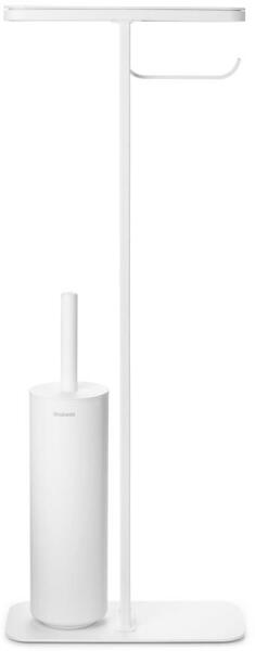 Brabantia MindSet WC-inas - WC-papír tartó állvány polccal, sörtés fejű WC-kefével, acél, szikrázó fehér ásványi textúra - 303883