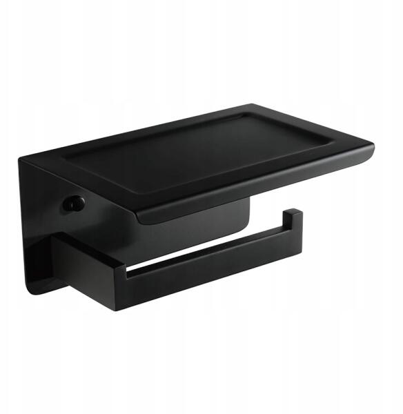 Fali Wc Papír Tartó Fürdőszobába Polccal, Matt Fekete Acél (TB000023)ALLEGRO
