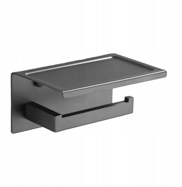 Falra Szerelhető Toalettpapír Tartó Fürdőszobába Polccal, Matt Szürke Acél (TB000024)ALLEGRO