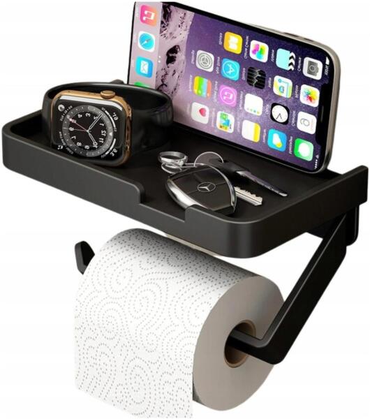 Fekete WC-papír tartó polccal Loft (5905884012789)