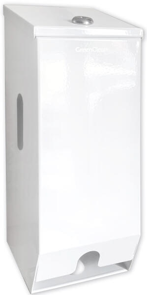 Green Clean Kistekercses WC-papír adagoló 2 tekercshez, függőleges, szögletes, felülről tölthető, zárható, acél, fehér (GCHD4B)