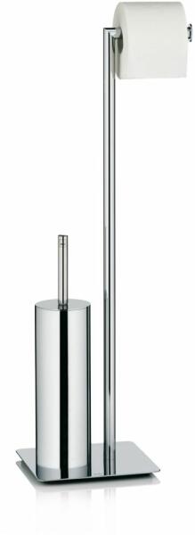 - álló WC szett- a készlet a következőkből áll: egy papírtartó és egy kefe egy tartályban - mindez egy négyzet alakú alapra helyezve- a kefe nyele és a tartó rozsdamentes acélból készült- a fogantyú és a tartó krómozott fémből készül- gumilábak az alap alján a stabilitás érdekében- a tartály belsejében egy műanyag tál van, amely kivehető és tisztítható- méretek 20 × 20 cm- magasság 71 cm- anyag: rozsdamentes acél, krómozott fém, műanyag