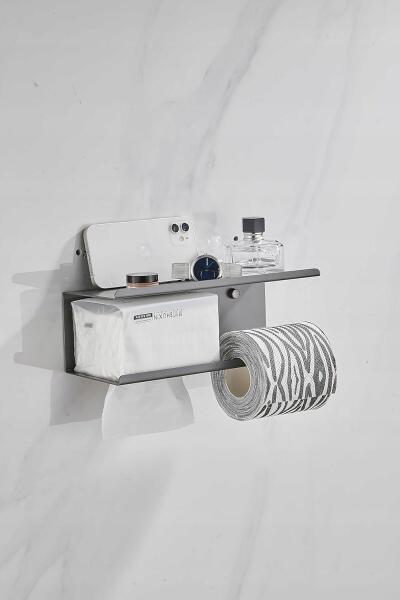 Kelelife Fúrásmentes Wc Papír Tartó Polccal, 30 cm, Fekete (B0CMDCM1NK)