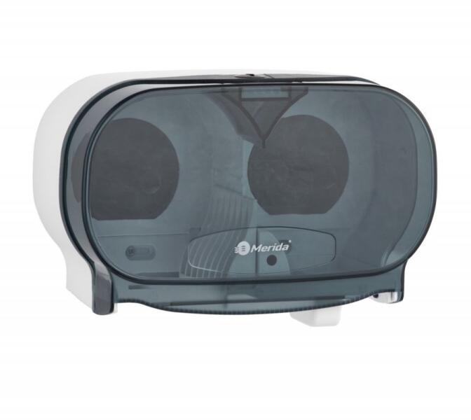 Adagoló 2 tekercs WC-papírhoz, tubus nélkül MeridaFőbb jellemzőkKapacitás: 2 WC-papír tekercs egyidejű tárolásáraMaximális tekercs átmérő: 12 cmMéret: 28 cm szélesség, 12,3 cm mélység, 18,5 cm magasságTubus nélküli adagolás5 év garanciaAz Adagoló 2 tekercs WC-papírhoz, tubus nélkül Merida praktikus megoldást kínál közösségi terek, irodák vagy otthoni fürdőszobák számára, ahol szeretnénk mindig kéznél tartani a WC-papírt anélkül, hogy túl sok helyet foglalnánk. A két tekercses kapacitás lehetővé teszi, hogy egy adagolóban mindig legyen tartalék, így biztosítva a folyamatos használatot. Ez a tartós kialakítású adagoló tubus nélküli használatra készült, ami egyszerűbb és gyorsabb tekercscserét tesz lehetővé, miközben megőrzi a higiénikus környezetet. Az eszköz méretei optimálisak, így könnyen felszerelhető és használható bármilyen fürdőszobában vagy közösségi helyiségben. Praktikus választás minden helyiségbeErős és megbízható konstrukciójának, valamint az 5 év garanciának köszönhetően hosszú távon kiszolgálja a felhasználót. Annak érdekében, hogy mindig kényelmesen hozzáférhessünk a WC-papírhoz és elkerüljük a kellemetlenségeket, válassza a Merida adagolót!
