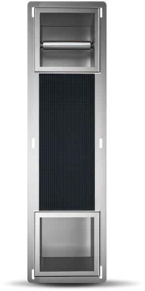 Grotta WC-papír tartó polccal. Ideális bármely fürdőszobába, mivel két funkciót egyesít - egy praktikus WC-papírtartót és egy rejtett tárolórekeszt a falban a papírkészlet számára. A tárolórekesznek köszönhetően az adagolón mindig kéznél van az extra WC-papír. Nem kell többé a fürdőszobai szekrényekben vagy más helyiségekben rejtegetnünk az extra papírtekercseket. A papírtartó rozsdamentes acélból készült, amely korrózióálló, így olyan anyag, amely jól működik a magas páratartalmú helyiségekben. A Grotta modern dizájnja tökéletes lesz bármelyik fürdőszobába, különösen a skandináv és loft stílusúakba. A Grotta WC-papírtartó polccal két színben kapható: rozsdamentes acél és fekete matt. - méretek: 74x20x14,7 cm - süllyesztéshez - keretszélesség: 2 cm - vastagság: 1,2 mm - anyag: rozsdamentes acél