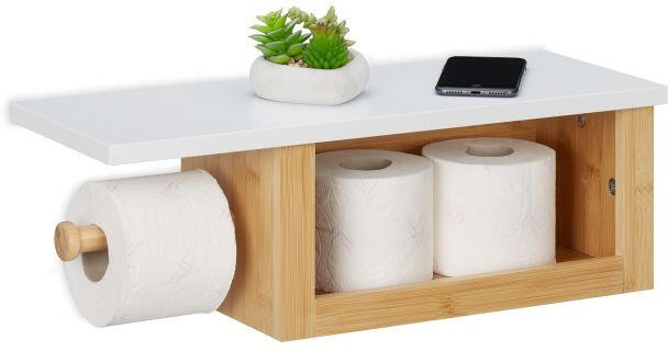 Relaxdays Bambusz WC-papír tartó polccal 17x50x18 cm 10046273