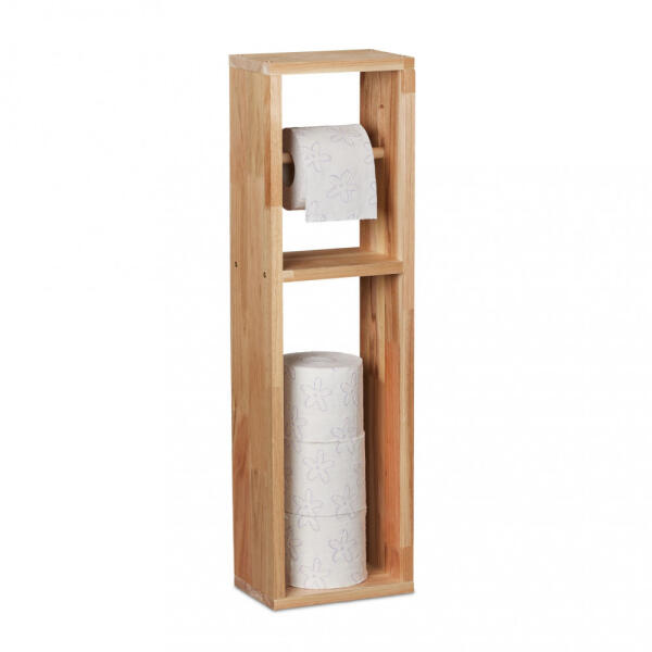 A WC-papír tároló megbízhatóan adagolja a WC-papírt, és akár 3 tartalék tekercs is készen áll. A WC-papír tartót egyszerűen és helytakarékosan rögzítse a falra az előkészített akasztók segítségével. Szükség esetén a tartalék tekercstartót szabadon elhelyezheti a fürdőszobában vagy a vendég WC-ben, és optimálisan kihasználhatja a kis helyeket. A diófából készült vécépapír tartó természetes megjelenésével könnyedén illeszkedik a különböző lakberendezési stílusokhoz.