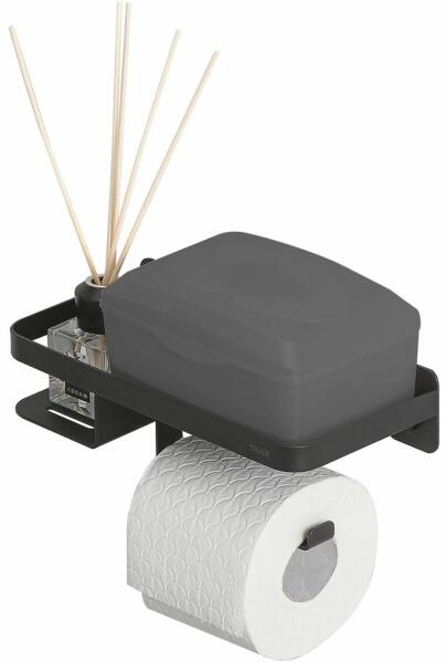 Kényelmesen fogja érezni magát ezzel az egyedi Tiger Caddy WC-papír tartóval és polccal. Az all-in-one megoldás helyet kínál az illatosítónak, a telefonnak, a nedves törlőkendőknek és még a női higiéniai cikkek tárolójának is. Igazi Houdini a fürdőszobai kiegészítők között, de az új Caddy tartóval a rendezett fürdőszoba nem illúzió. A fekete változattal időtlen hangulatot varázsolhatsz fürdőszobádba. - egyedülálló, mindent egyben fürdőszobai megoldás tárolóhelyekkel- a legnépszerűbb nedves törlőkendő méretekkel tesztelve a tökéletes illeszkedés érdekében- 16cm x 11,2cm méretű dobozok tárolhatók- gyorsan és alaposan tisztít az antibakteriális porfestéknek köszönhetően- a Caddy termékcsalád minden célnak megfelelő tusfürdőtartók széles választékát kínálja- könnyen felszerelhető, olyan rögzítőanyagokat tartalmaz, mint a rozsdamentes acél csavarok és fali dübelek- a csavarok a felszerelés után láthatatlanok a (mellékelt) speciális kupakoknak köszönhetően