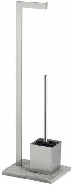 A Granite 2 az 1-ben szabadon álló fürdőszobai állvány tartalmaz egy WC-papírtartót és egy WC-kefét. - alapméretek: 23 x 19,5 cm- magasság: 73,5 cm- kefe cserélhető sörtékkel, 8,5 cm átmérővel- nyitott kefetartóval- anyag: rozsdamentes acél- szín: kőszürke